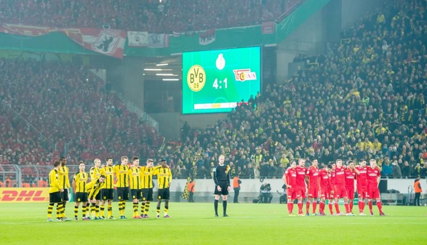 Также, стоит отметить, что игра против Дортмундской "Боруссии" была невероятно важной для "железных". Например, одним из факторов, являлось поражение "Униона" на матче открытия их стадиона со счетом 1-3. Плюс, не каждый день активным болельщикам команды из Второй Бундеслиги удается померится силами с "Желтой стеной". Как итог - 12000 болельщиков из Берлина поехали всеми возможными и невозможными способами, дабы поддержать свою команду по-полной!