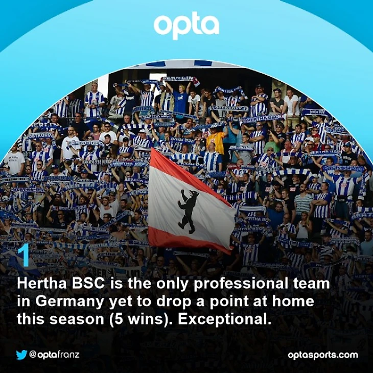 Герта является единственным профессиональным футбольным клубом в Германии, который еще не терял очки на домашней арене в этом сезоне.