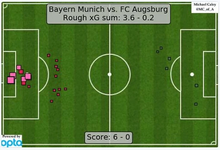 Из 21 удара по воротам, которые нанесла «Бавария» в матче с «Аугсбургом» Томас Мюллер нанес 8 ударов, а Роберт Левандовски – 6.