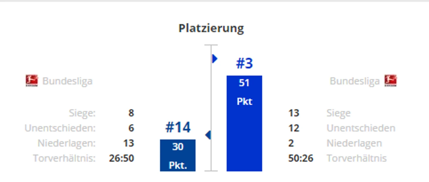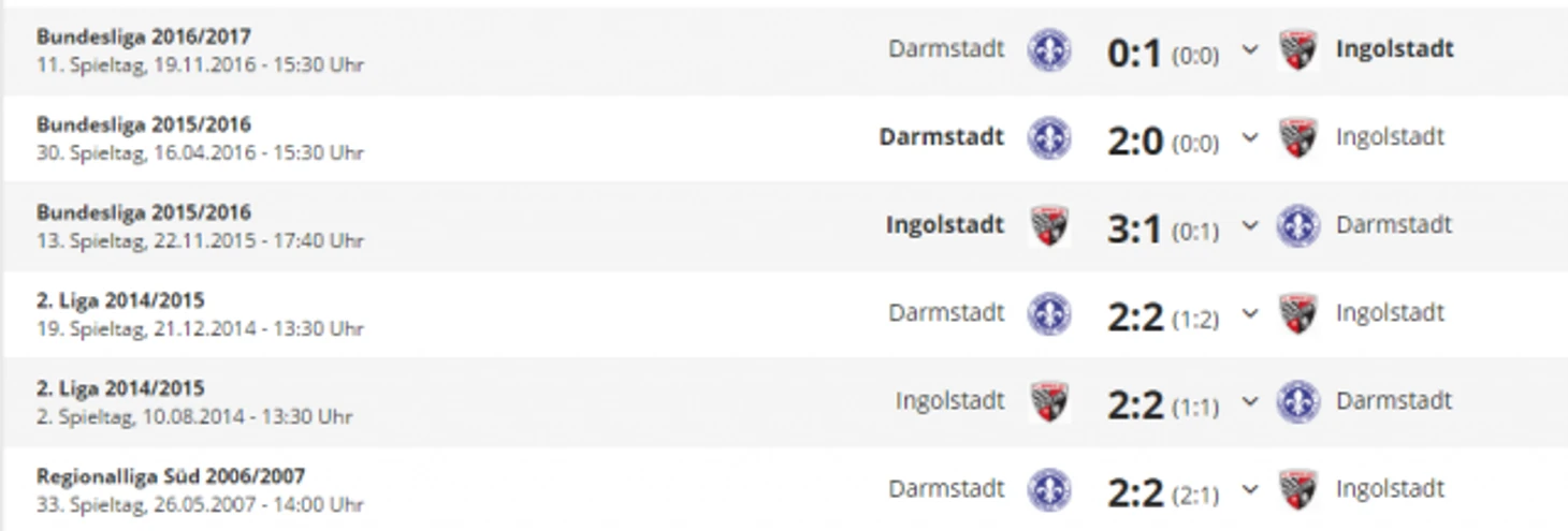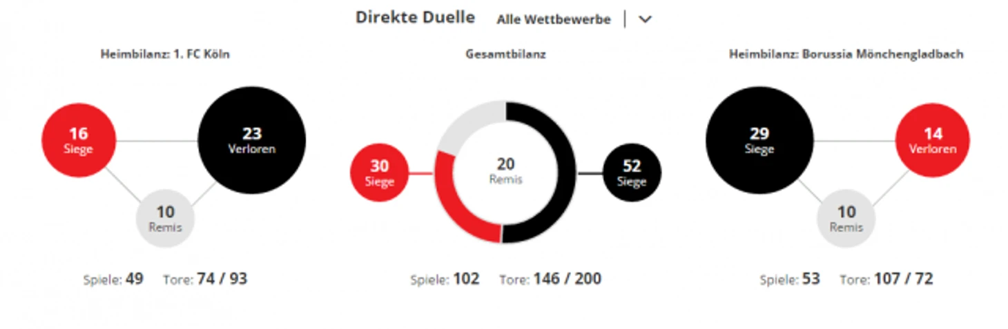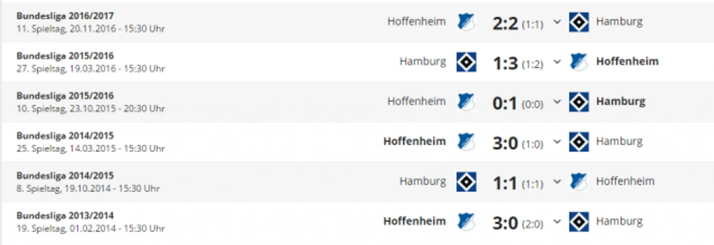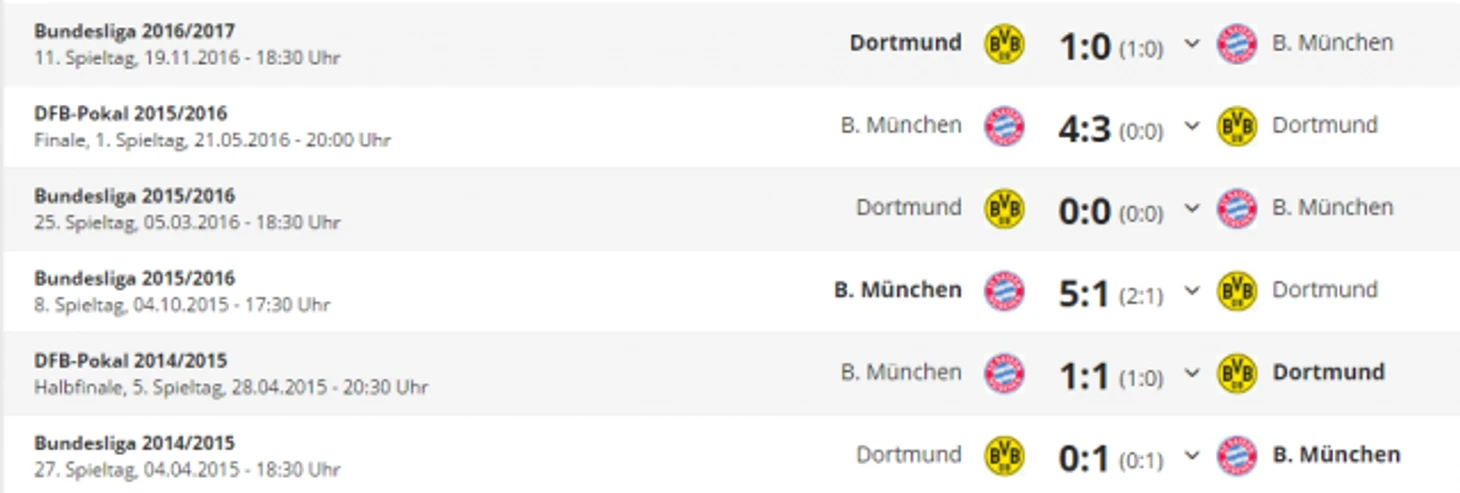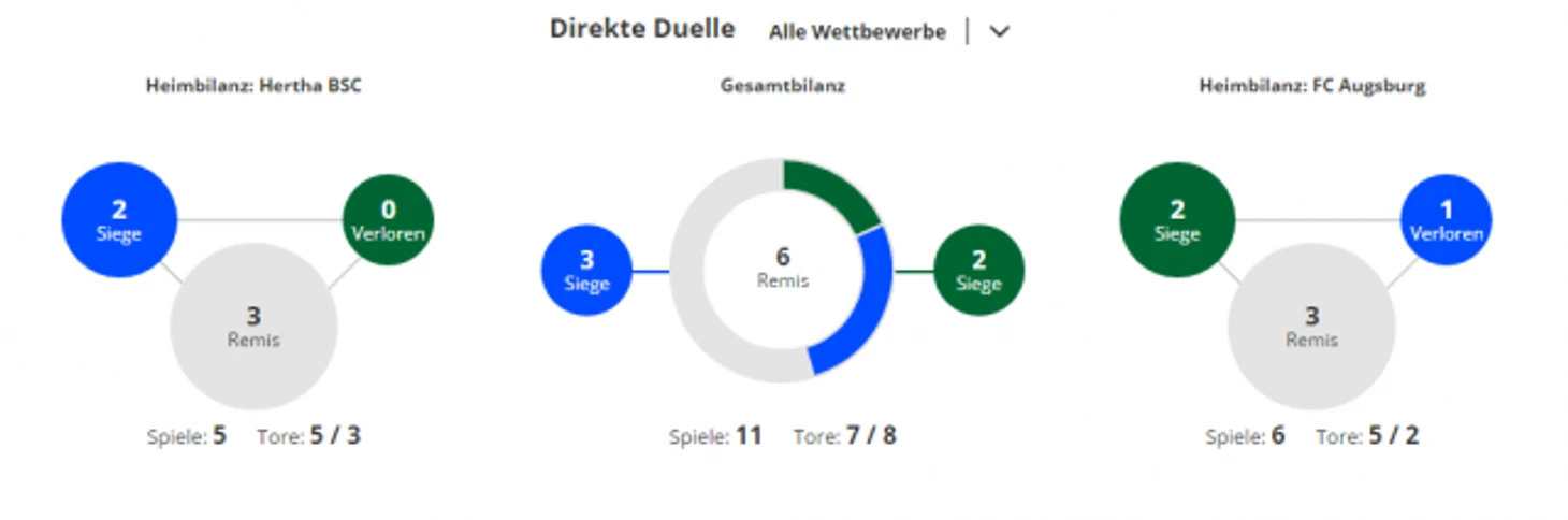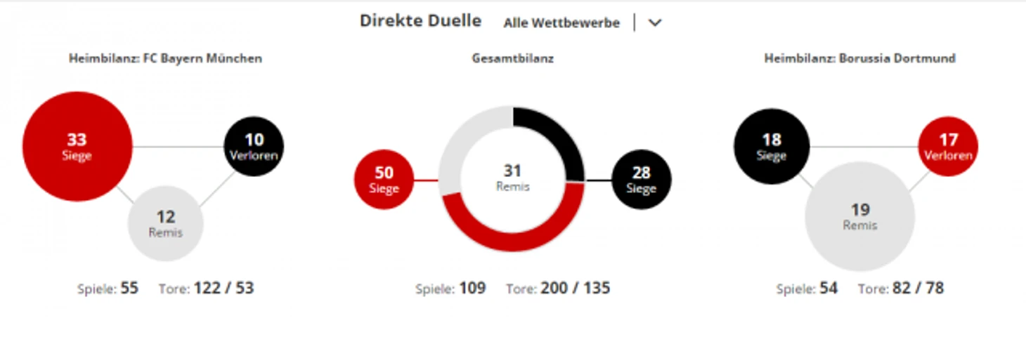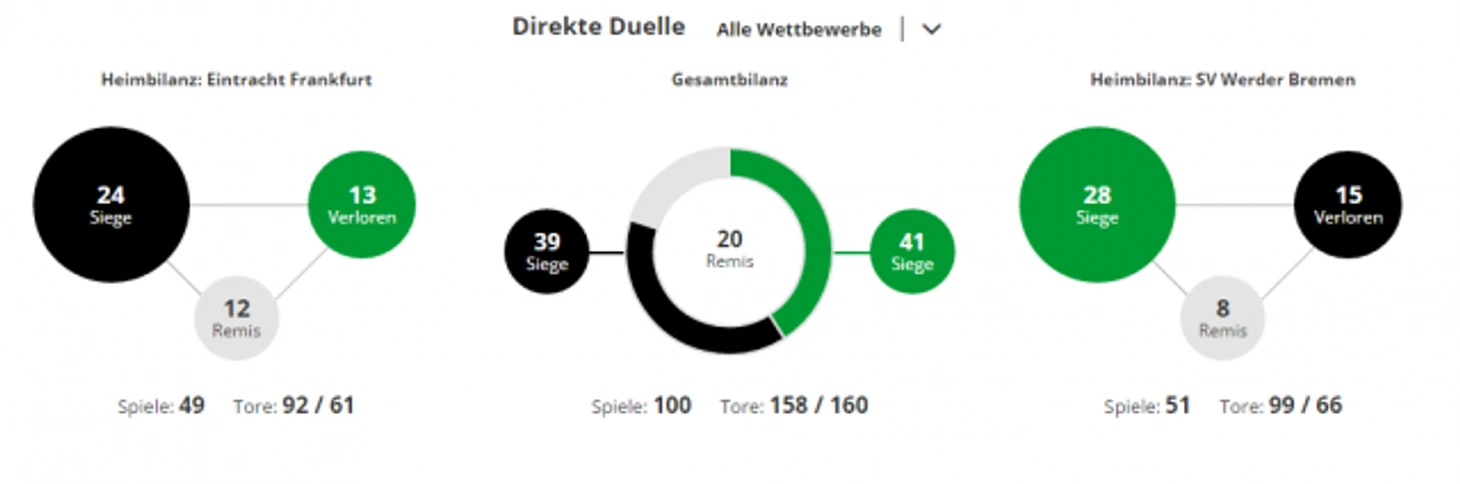 *Gesamtbilanz - общий баланс, heimbilanz - баланс игр дома, remis - ничьи, siege - победы, tore - голы