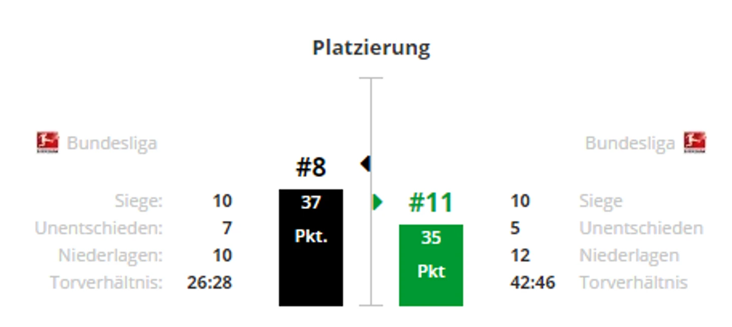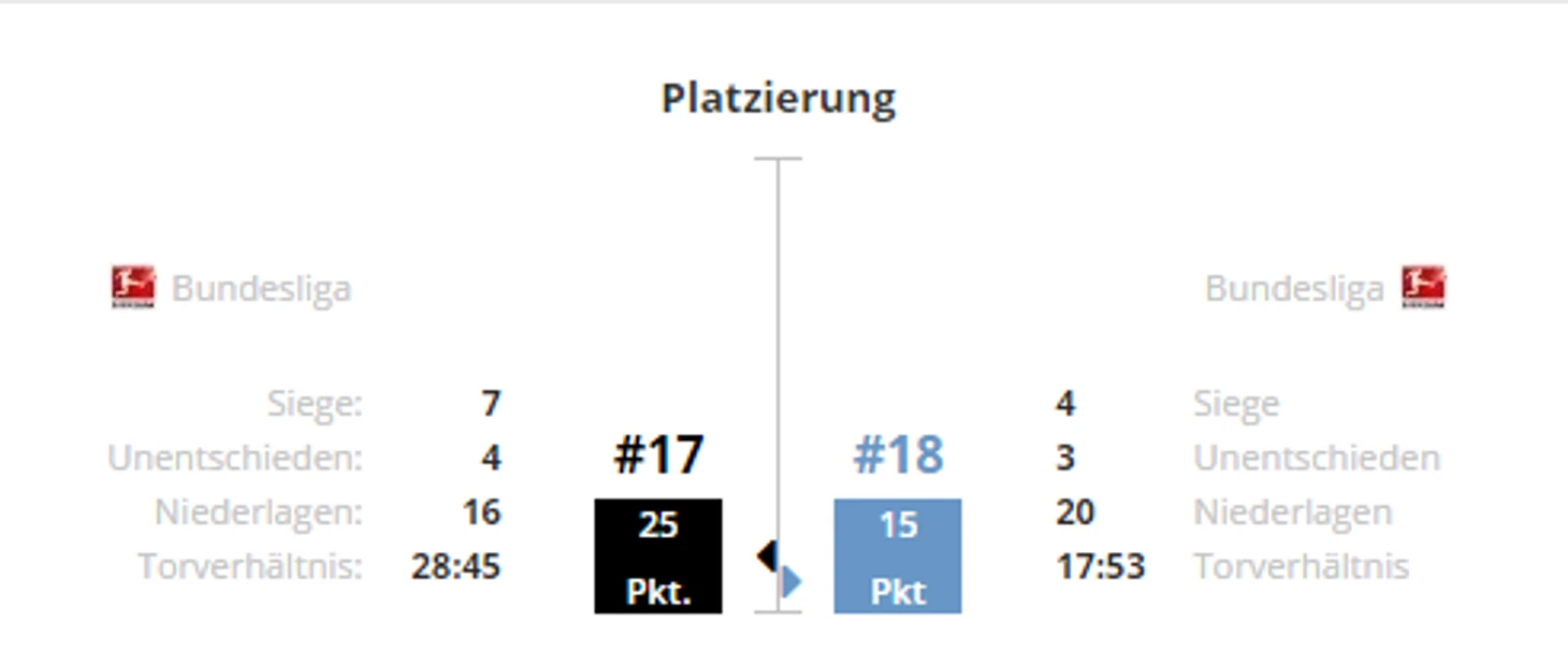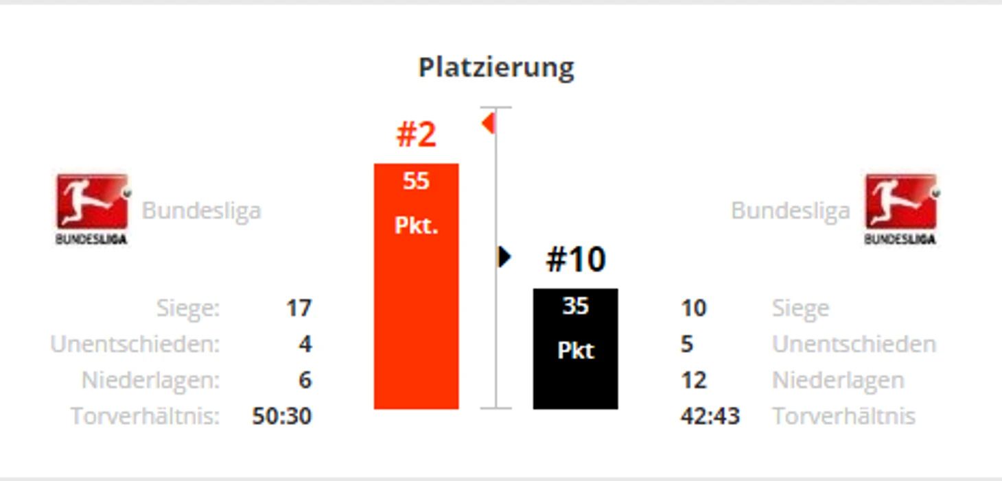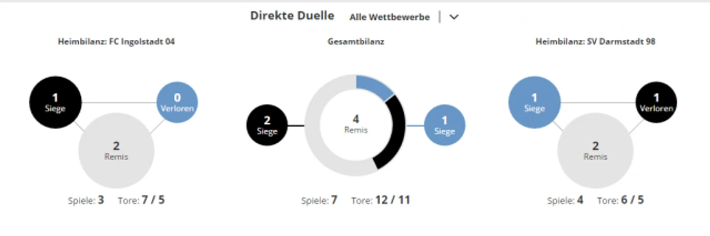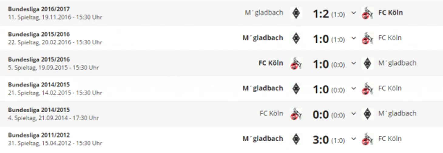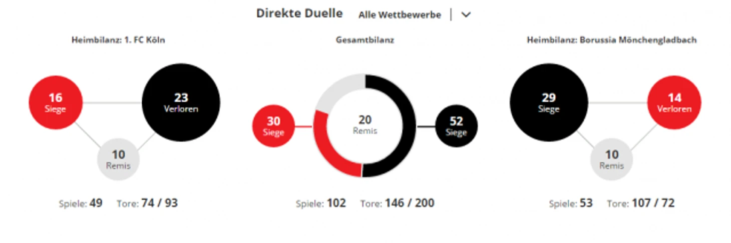 *Gesamtbilanz - общий баланс, heimbilanz - баланс игр дома, remis - ничьи, siege - победы, tore - голы
