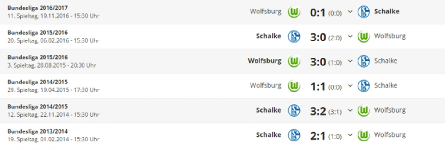 В 2016-м календарном году "Вольфсбург" проиграл обе матче "Шальке" и не забил ни доного мяча;