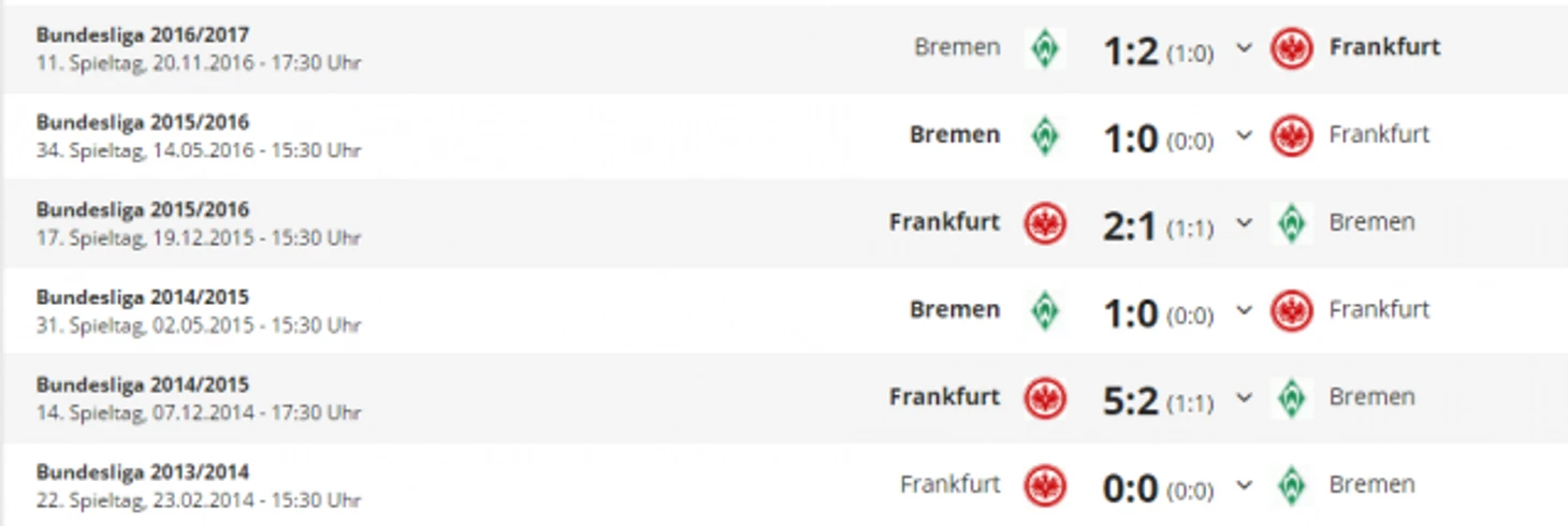"Айнтрахт" не проигрывает "Вердеру" дома на проотяжении шести матчей (4 победы, 2 ничьи).