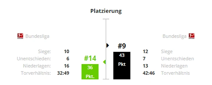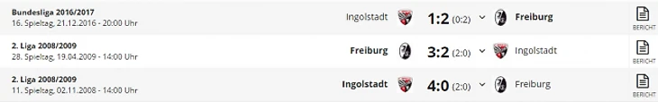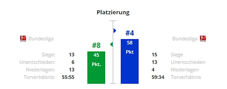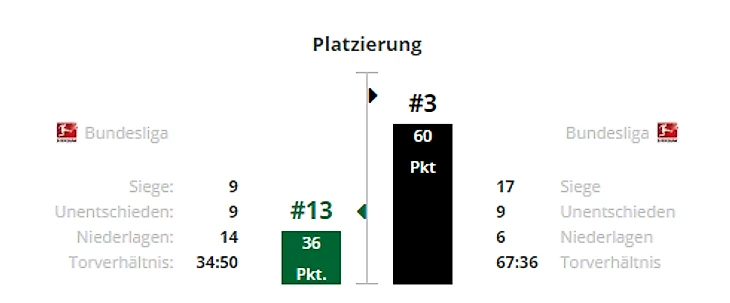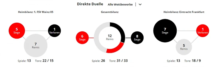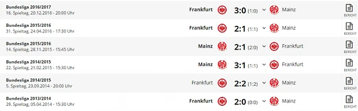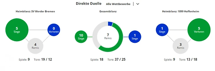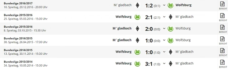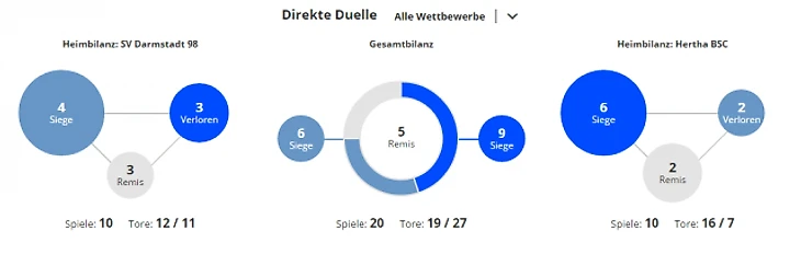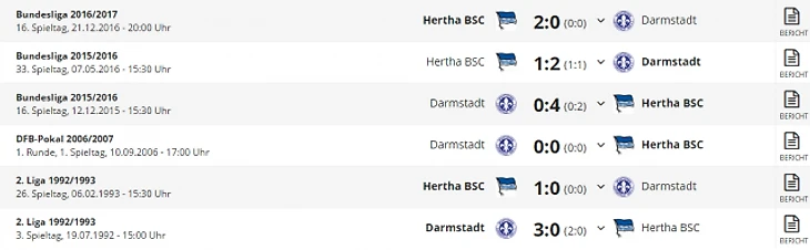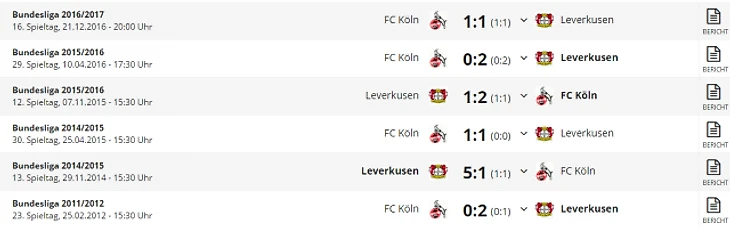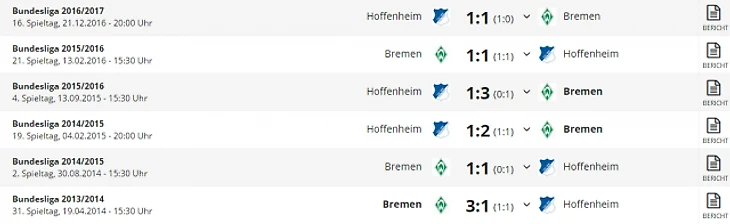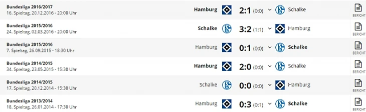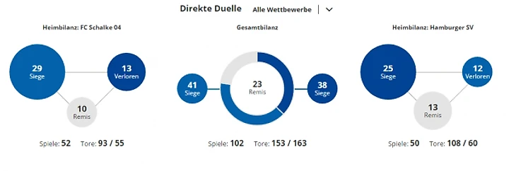 *Gesamtbilanz - общий баланс, heimbilanz - баланс игр дома, remis - ничьи, siege - победы, tore - голы