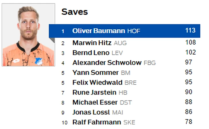Однако лучший результат в сезоне у Мануэля Нойера, на счету которого таких встреч четырнадцать. Зато вратарь хозяев сделал больше всего «спасений»: их на его счету целых 113.