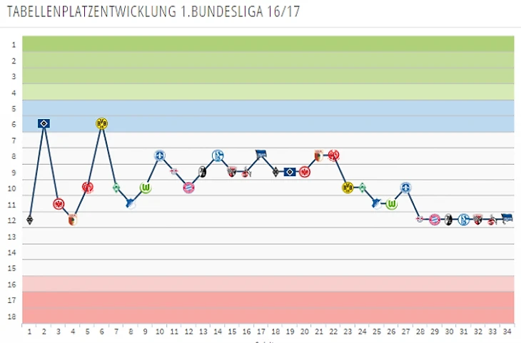 График турнирного положения «Байера» на протяжении всего сезона.