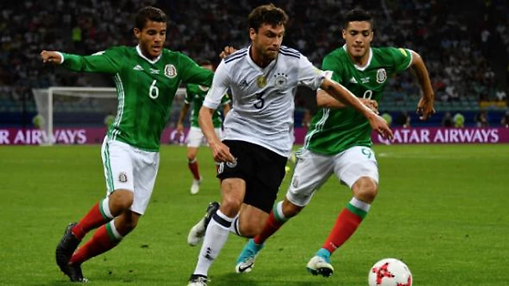 План удался. Германия начала бойко. Видимо сказались несколько дней отдыха на пляже отеля в Адлере (некоторые игроки не побрезговали сходить и на городской пляж). Атмосфера курортного городка явно пошла на пользу команде Лева. Если мексиканцы, до матча запертые на базе в Хосте своим тренером Хуаном Карлосом Осорио, играли довольно вяло, то точность и интенсивность передач сборной Германии просто поражала.