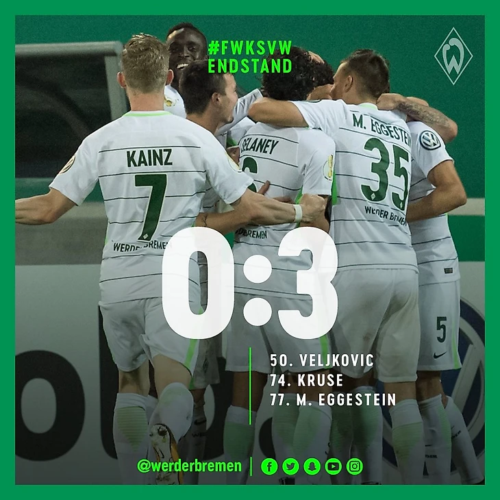 «Вердер» провел вполне будничный матч в Вюрцбурге, наколотив в ворота соперника три мяча.