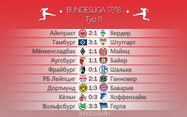 Согласно прогнозам. Обзор 11-го тура Бундеслиги