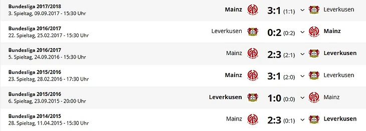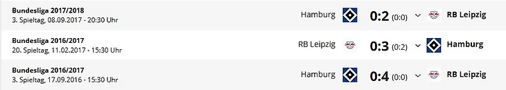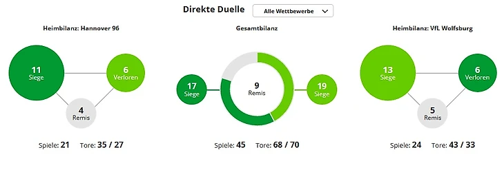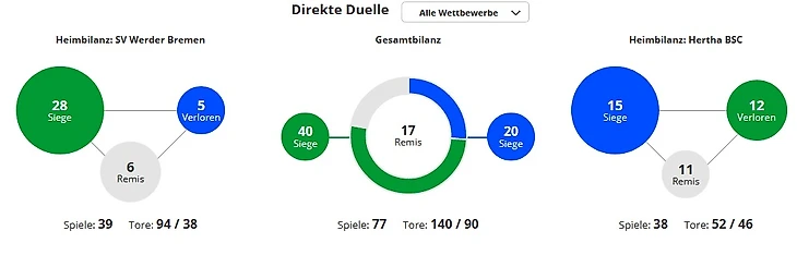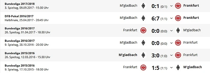 *Gesamtbilanz – общий баланс, Нeimbilanz - баланс игр дома, Remis - ничьи, Siege - победы, Тоге - голы