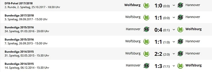В матче первого круга команды разошлись миром (1:1). А осенью команды встречались в Кубке Германии, "Вольфсбург" выиграл с минимальным счетом