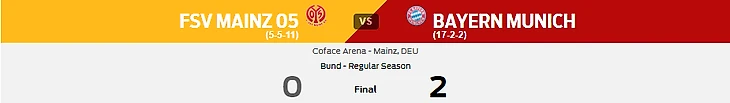 «Майнц» пропустил больше голов (62) от «Баварии», чем от любой другой команды.