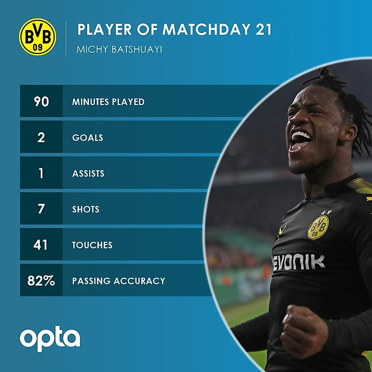 Гол Миши Батшуайи стал 500-м голом Бундеслиги в этом сезоне.