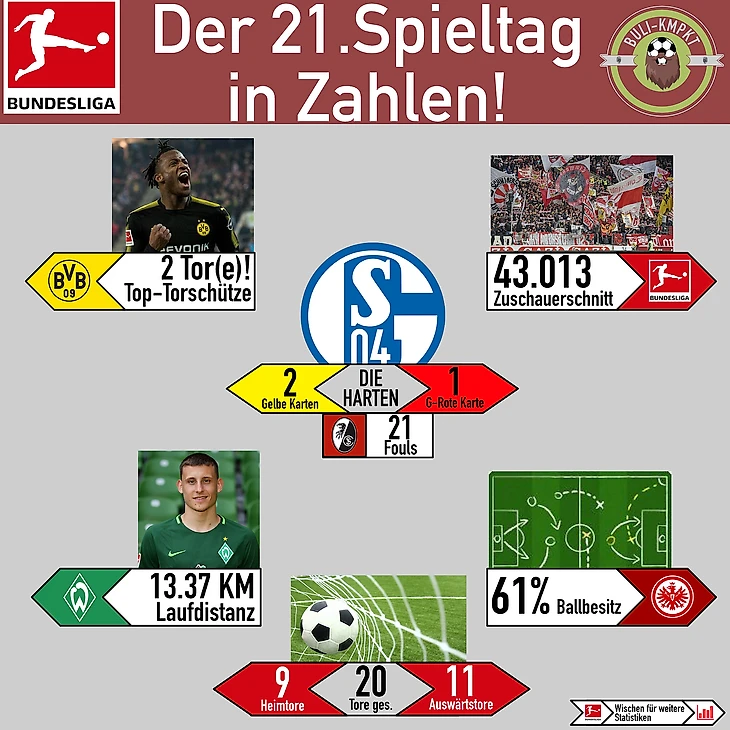 Также, стоит отметить, что вратари в этом матче сыграли не самым лучшим образом в составе обеих команд и голы Коноплянки и Крузе можно отнести к разряду очень курьезных. «Вердер» после этого матча восстает из пепла и вырывается после этого тура из зоны вылета. «Горняки опускаются на пятую строчку, хотя отстают от второго место на один балл, но в следующем матче им предстоит сразиться с грозной «Баварией», да еще и на «Альянц-Арене».