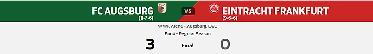 А вот «Айнтрахт» имел на это свои козыри в виде всего лишь одного поражения в гостях за весь сезон. К этому еще и стоит прибавить, то, что команда прекрасно начала чемпионат, где пусть и не против самых сильных противников, но сумела набрать 7 очков из 9 возможных. Однако, в Аугсбурге что-то пошло не так.