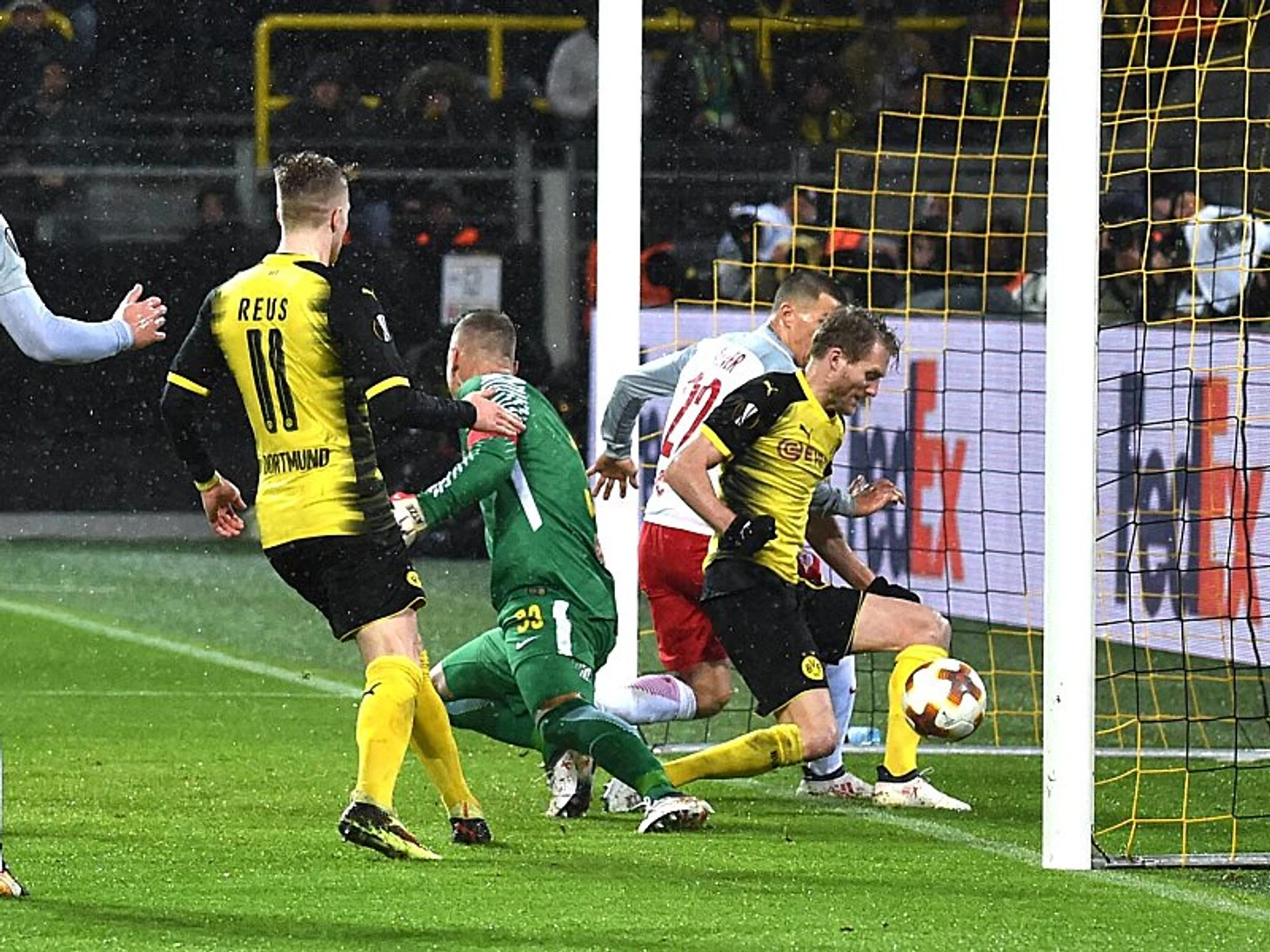 Прямо перед перерывом штанга спасла Дортмунд от удара Хванга. Тем не менее, счёт остался нулевым после первого тайма, хотя темп большую часть времени задавали именно австрийцы.