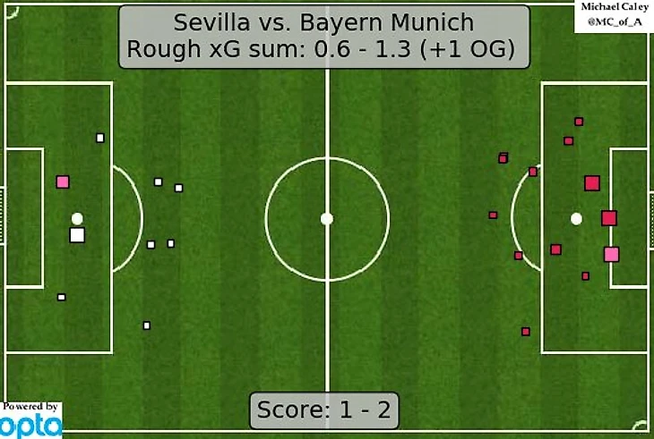 В стартовом отрезке игры «Бавария» доминировала над своим соперником. Тренеры «Севильи» явно отсмотрели матчи Бундеслиги с участием мюнхенского клуба и особенно субботнюю игру с Дортмундом и сделали правильные выводы. Штаб Монтеллы свое «домашнее задание» к матчу выполнил на «отлично». «Севилья» не стала пытаться бороться за центр поля с первых же минут, но сосредоточилась на зонной защите своей штрафной. И, как оказалось, это дает противоядие против доминирующих атак «Баварии». Было четкое ощущение, что «вот-вот, еще чуть-чуть, и мюнхенцы додавят», но на деле выходило совершенно по-другому.