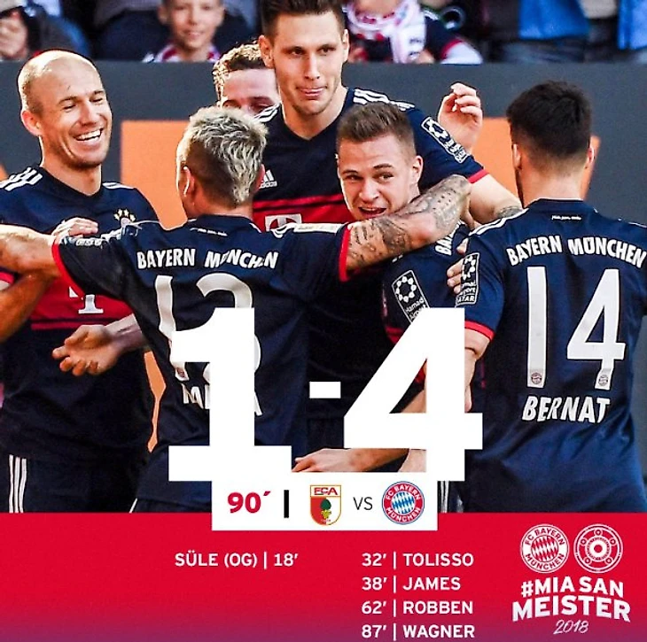 Главная «интрига» этого сезона Бундеслиги, сможет ли «Бавария» уже в Аугсбурге стать обладательницей салатницы? Как оказалось, смогла.