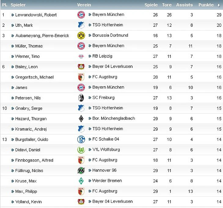 Мартин Харник отличился забитым мячом впервые с 15-го тура и, таким образом, набрал свой первый балл по системе «гол+пас» во втором круге. Всего на счету австрийца теперь 60 мячей в Бундеслиге.