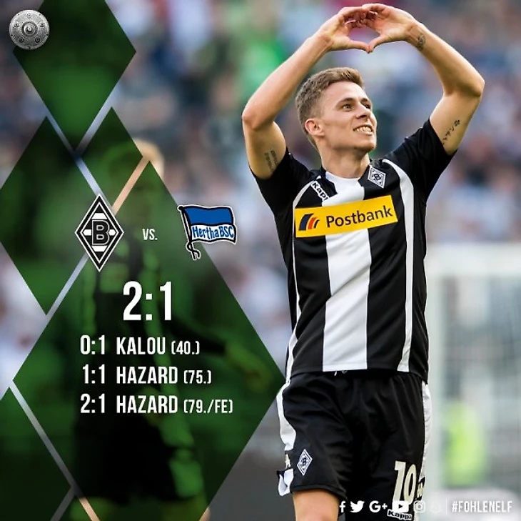 Исход матча решила замена в перерыве Закарии на Азара и по ходу второго тайма Кюизанса на Дрмича. Последний, после выхода на замену активно включился в игру и отдал результативный пас на Азара (’75 1-1) и разогнав в атаку Эльведи, который снова наградил пасом Азара через несколько минут (’79 2-1). «Герта» усилиями Калу в первом тайме смогла забить мяч (’40 0-1), но команде по прежнему не хватает уверенности в своих силах. Гладбах выигрывает в восьмом матче из девяти последних против столичной команды, а Дитер Хеккинг подтвердил свой класс в очередной раз не проиграв команде Паля Дардая. Перед Гладбахом снова замаячили еврокубки.