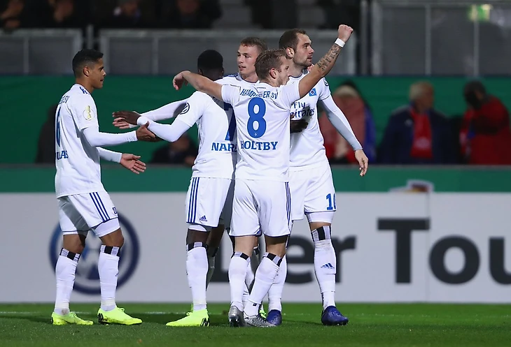 После тупейшей отставки Кристиана Титца и назначения Ханнеса Вольфа руководству «Гамбурга» как никогда важны положительные результаты – решению и так не обрадовались ни фанаты, ни, есть подозрение, игроки. И кубковый матч сложился для динозавров довольно удачно. Страдавший от низкой результативности в чемпионате «Гамбург» вдруг показал отличную реализацию и добился комфортного преимущества в счете даже не имея игрового преимущества.