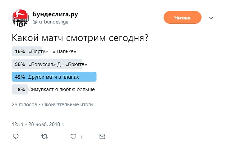 Читатели нашего твиттера ответили про симпатии в этот вечер следующим образом.