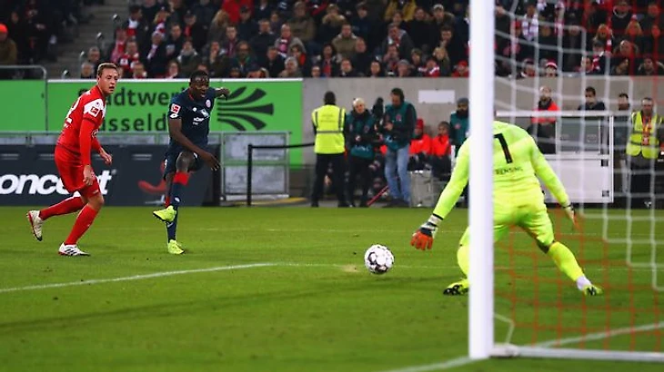 Но «Майнц» так просто не проймёшь. Команда, которая в этом сезоне уже к нынешнему туру набрала очков больше, чем многие предсказывали ей до начала сезона, продолжает показывать зубы. Ко второму тайму в действиях «карнавальщиков» появилось больше осмысленности, а к середине тайма — и результат. На 67-й минуте Матета очень ловко открылся для хитрой вертикальной передачи от Куайсона, отрезавшей его от сразу двух центральных защитников «Фортуны». Французу хватило даже времени на то, чтобы остановиться в метре от вратарской и обдумать дальнейшие действия, чтобы выбрать наиболее простой и очевидный вариант. Рензинг, как оказалось, не был готов ни к одному из возможных путей развития событий.