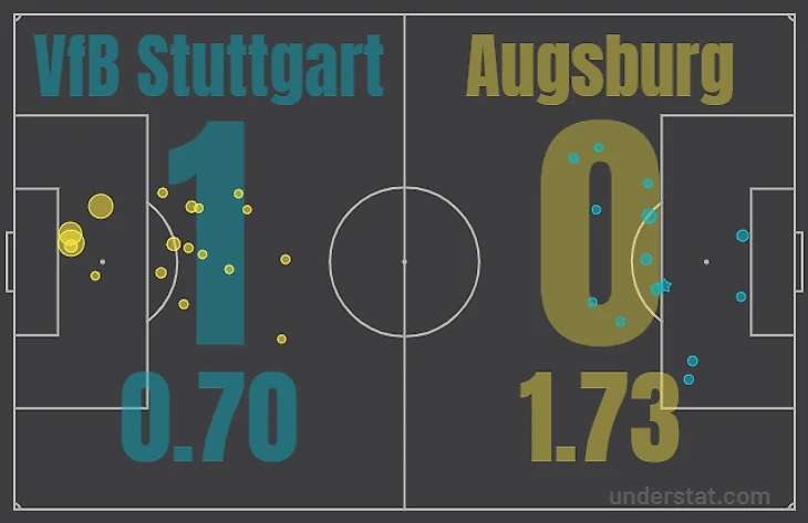 «Штутгарт» пытался использовать свое классическое оружие, стандарты − вещь, в которой команда традиционно сильна, но в этот раз получалось не слишком изящно. Куда изящнее вышел сам голевой эпизод ближе к концу первого тайма: поперечная передача от Бека сквозь пограничную со штрафной зону, полную игроков «Аугсбурга», и удар от Дониса мимо не среагировавшего на него Луте.