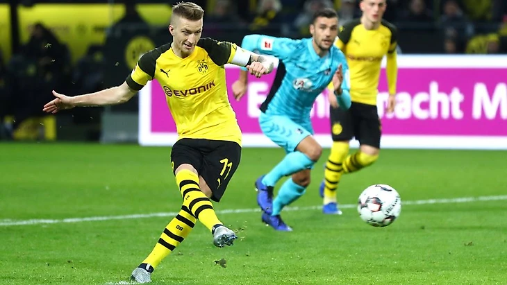 Первого гола «шмелей», впрочем, пришлось ждать почти до конца первого тайма, и лишь когда Хайнтц свалил Санчо в штрафной, Ройс смог открыть счёт с одиннадцатиметровой отметки. Правда, Гондорф чуть было не сравнял со штрафного, но перекладина спасла «Боруссию»: если уж везёт, то везёт во всём.