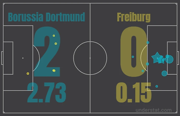 «Боруссия» пока не проиграла в Бундеслиге ни матча. И «Фрайбург» тоже не составил для неё ни малейшей угрозы. Ройс и Алькасер, одни из главных творцов успеха нынешнего сезона, остаются на высоте и тянут команду вперёд. Команда начала резво и интенсивно, бодро атакуя и не слишком позволяя «Фрайбургу» развернуться. Даже периодически случавшиеся в первом тайме ошибки Загаду не помогли парням Штрайха справиться с воротами Бюрки: Пищек и Хакими оказывались на месте.