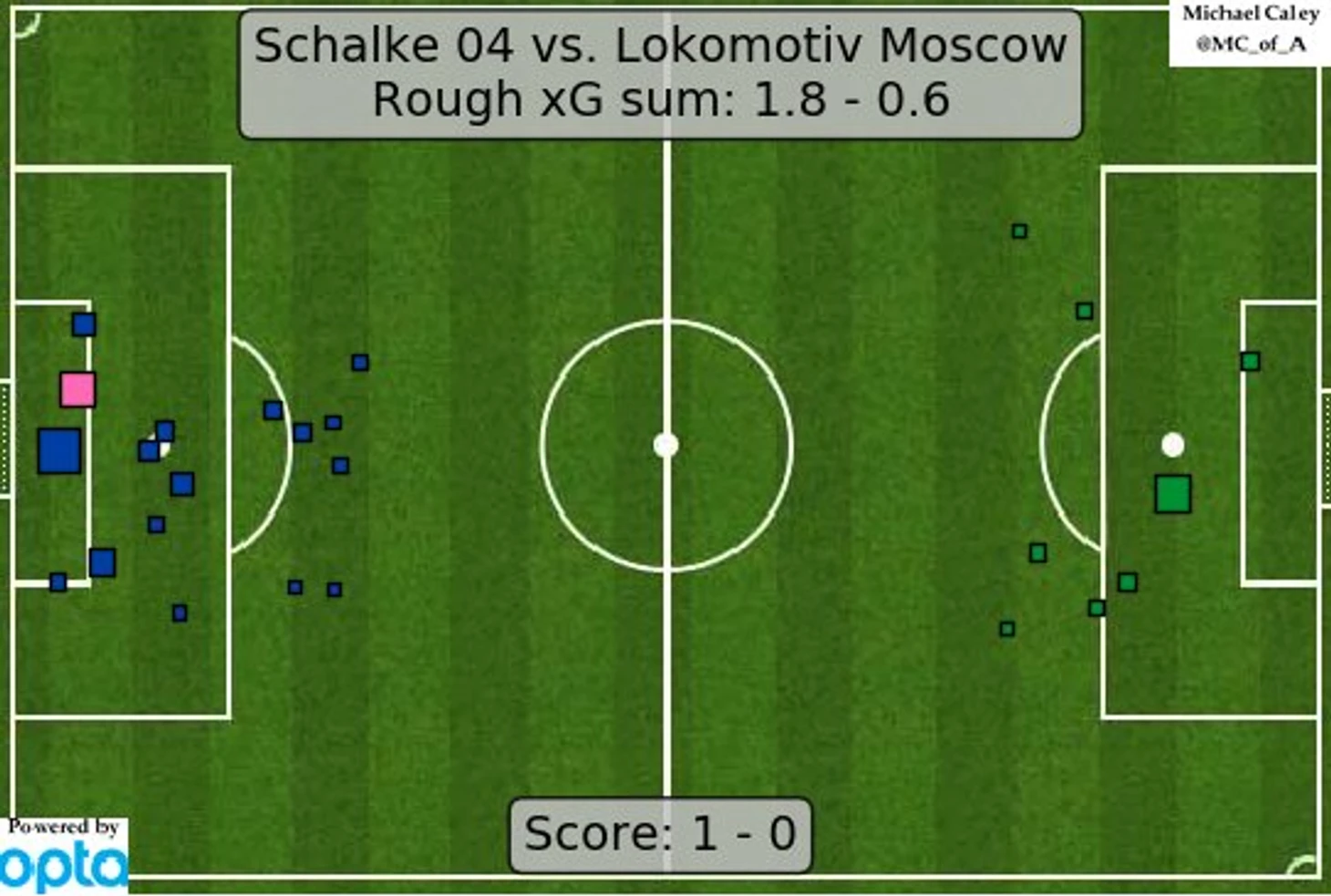 Если же взглянуть на соперника, то от московской команды мог ожидаться только самый высокий настрой на матч. Всё, или ничего. И если сравнивать с «Шальке», всего одна замена в составе в сравнении с предыдущим матчем «Локомотива». Целью гельзенкирхенцев же будто и не было побеждать и первый тайм можно охарактеризовать не самым высоким темпом, отсутствием остроты атаки и действительно опасных моментов и исключительно индивидуальными всплесками у Голлера и Сердара. Самым серьёзный же момент первой половины матча принадлежит не немецкой команде: уже в добавленное время с передачи Баринова Денисов пробил выше ворот. На перерыв «Шальке» ушли со смешанными эмоциями. Действительно слабый тайм, который компенсировался только тем, что соперник также немногое мог предложить в ответ.