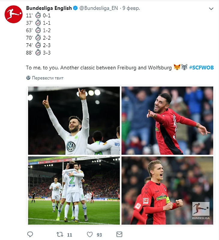 «За меня, за тебя. Очередная классика от "Фрайбурга" и "Вольфсбурга"».