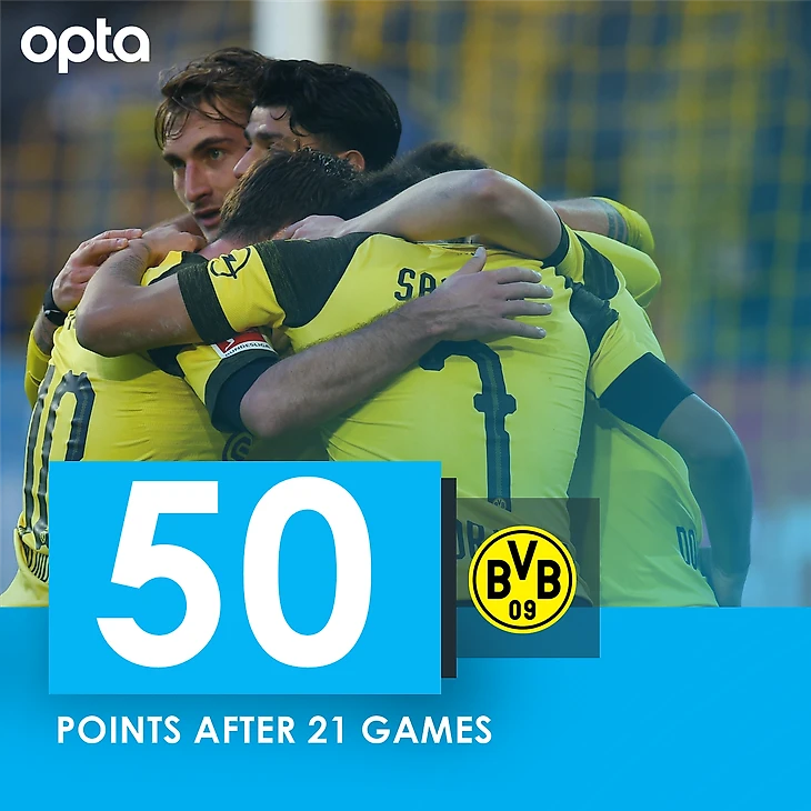 «Боруссия» имеет на своем счету после 21 тура 50 очков — только однажды команда, набравшая более 50 очков после 21-го игрового дня, не стала чемпионом. Это приключилось с «Шальке 04» в сезоне 1971-1972, тогда преимущество над «Баварией» также составляло 5 очков.