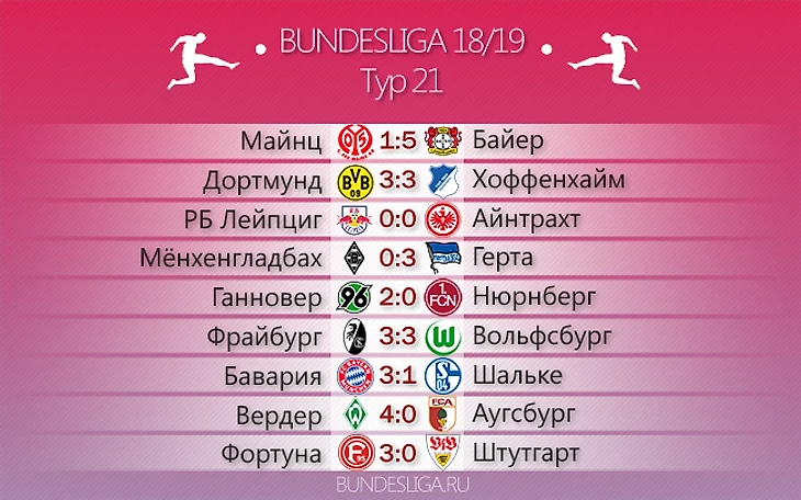 Дортмундская «Боруссия» теряет очки, «Бавария» пользуется моментом, чтобы оправиться от поражения в прошлом туре и подобраться на расстояние пяти очков, гладбахская «Боруссия» же свой шанс остаться в чемпионской гонке упускает. Град голов со всех сторон, высокорезультативные ничьи, автоголы и удаления – таким запомнится 21-й тур.