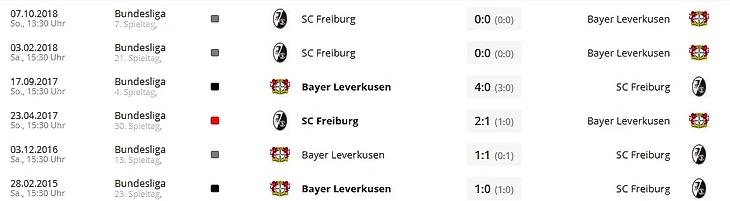 Два последних матча между этими командами заканчивались со счетом 0:0. Но это были игры во Фрайбурге. Предыдущая леверкузенская дуэль завершилась разгромом гостей (4:0)