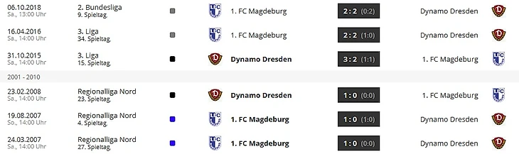 Команды не так часто встречаются между собой, всего три матча за десять лет. Последний раз "Магдебург" побеждал "Динамо" в 2007 году в матче Региональлиги Норд (тогда это был третий дивизион)