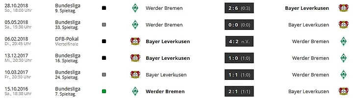 В матче первого круга "Байер" довольно неожиданно выиграл 6:2. Тот матч пока является самым результативным в сезоне (наряду с 7:1 в игре между "Айнтрахтом" и "Фортуной"). Это самое крупное поражение Флорина Кофельдта на посту главного тренера "Вердера"