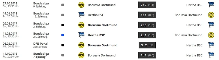 Последний раз "Боруссия" побеждала в Берлине (в Бундеслиге) в 2014 году. Тогда за команду Клоппа забивали Левандовски (дважды), Йойич и Мхитарян. Из тогдашнего стартового состава "Боруссии" в команде остались только Пищек, Шмельцер и Ройс
