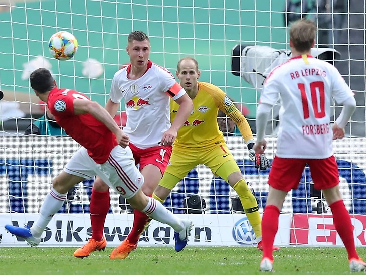 Впрочем, начало второго тайма ознаменовалось ударной серией ярких моментов от «Лейпцига» – в чем-чем, а в умении смотивировать команду Ральфа Рангника сложно упрекнуть. Однако интересно заметить, что в большинстве последних игр «быки» забивали свой первый мяч в отрезке с 10-й по 20-ю минуту, и такая проблема, как отыгрывание пропущенного мяча, давно не вставала над командой, что ставило игроков в не самое комфортное положение. Изменить же течение игры, впрочем, команда из Лейпцига пыталась всеми силами. На 49-й минуте Конате сделал удачный разрезающий пас на Эмиля Форсберга, который уверенно переиграл Нойера при выходе один на один ударом со средней дистанции под левую руку – однако Нойер сумел сотворить какое-то чудо, напоминая самого себя в самые лучшие годы. Голкипер уже в падении смог легчайшим движением перевести мяч за лицевую. В попытках не терять концентрацию Форсберг вырезал неплохую передачу на Тимо Вернера – однако здесь Нойер сумел схватить мяч обеими руками. Активно пресекать попытки «Баварии» освоиться в чужой штрафной пытался Лукас Клостерманн, не всегда чисто орудуя локтями. Боевые настроения «Лейпцига» снова разгонялись – так, выстрел Вернера на 58-й минуте после отличного прохода по правому флангу казался почти неберущимся. Однако Нойеру на помощь успел прийти Давид Алаба – и ворота «Баварии» вновь остались «сухими».