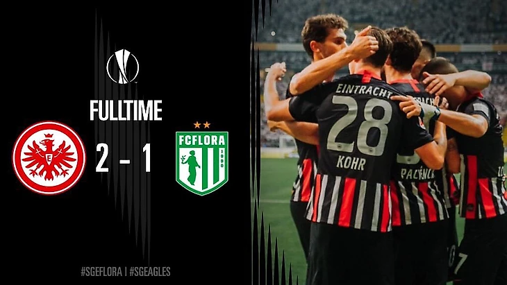 С самого начала игры футболисты «Флоры» ожидаемо села в защиту и пыталась искать своё счастье на контратаках. Франкфуртцы же пытались в своей манере прорвать защиту в основном по флангам, но в основном навесы просто не доходили до адресатов. И только на 36 минуте Да Коста нашел подачей именинника Гонсало Пациенца, который в падении переправил мяч головой в дальний угол ворот соперника.