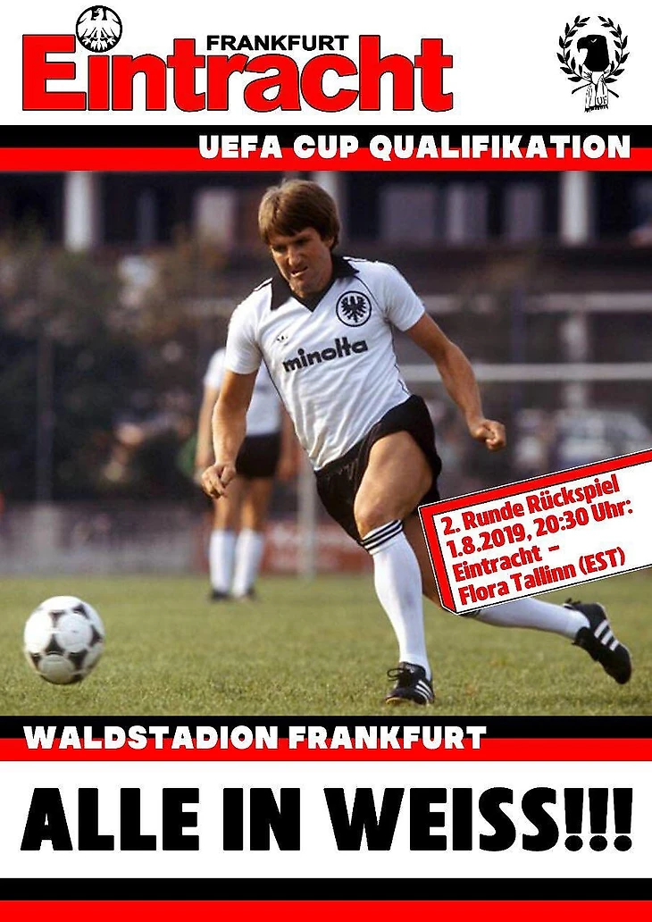 Неофициальная афиша к матчу Айнтрахта против Флоры из Таллинна «Все в белом!!!»