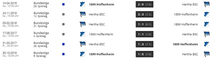 Последние 11 матчей против «Хоффенхайма» у берлинцев складываются неудачно. За все это время «Герта» выиграла лишь раз ‒ в ноябре 2015 года со счетом 1:0.