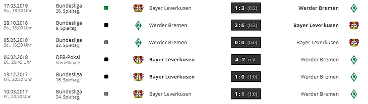 Леверкузен выиграл только один из последних пяти домашних матчей против «Вердера». Последний раз это произошло в декабре 2017 года благодаря голу Аларио – 1:0.