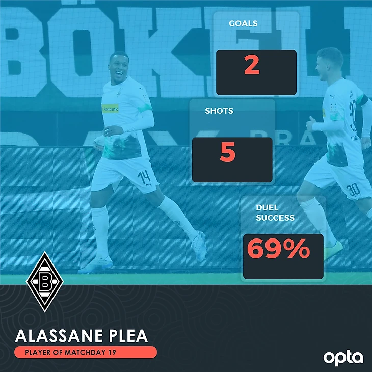Плеа сделал второй дубль в Бундеслиге и забил шестой гол в чемпионате.