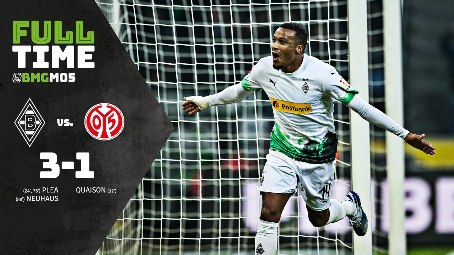 За 15 минут до конца встречи хозяева взяли инициативу в свои руки и «ноги» и вышли вперед. И снова Алассан Плея оказался на мяче после отличного навеса в штрафную от партнера по команде. Исход матча решил взять на себя Флориан Нойхаус, забив очень красивый мяч. Флориан решил переиграть вышедшего из ворот голкипера «Майнца» высоким ударом в сторону ворот. Робин Центнер успевал, но чуть раньше выпрыгнул и в прыжке лишь черканул мяч. Но стоит по достоинству оценить его игру в начале этого момента, когда он отлично сыграл на выходе. Увы, в таких турнирах ошибки не прощают и не щадят. Что и продемонстрировал «Майнц».