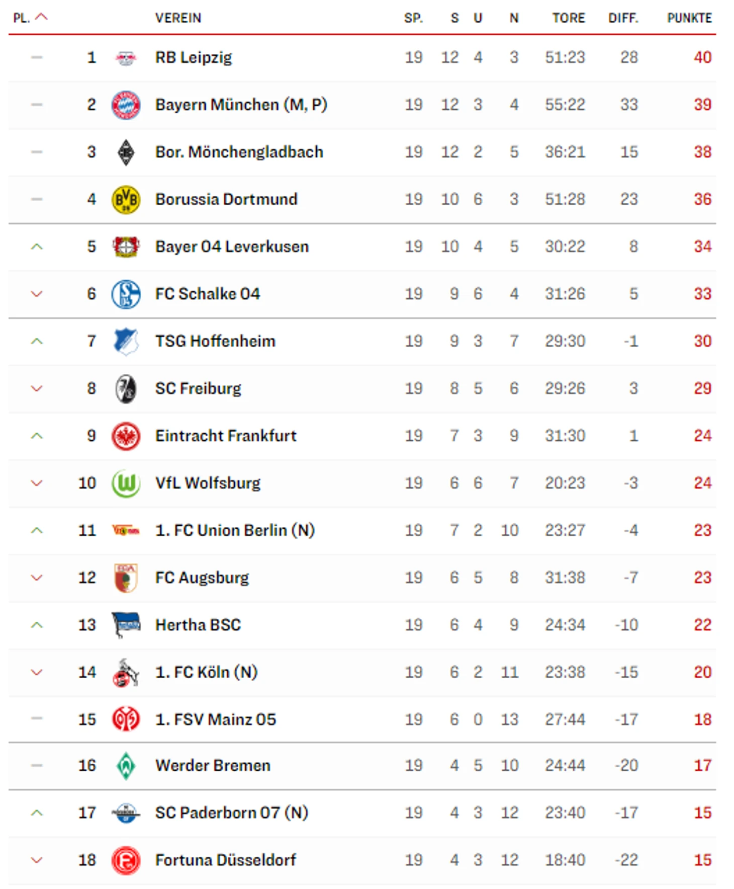 Эффектное завершение 19 тура Бундеслиги. Ни одной ничьи. В каждой игре был выявлен победитель, а это значит, что в турнирной таблице все не спокойно.