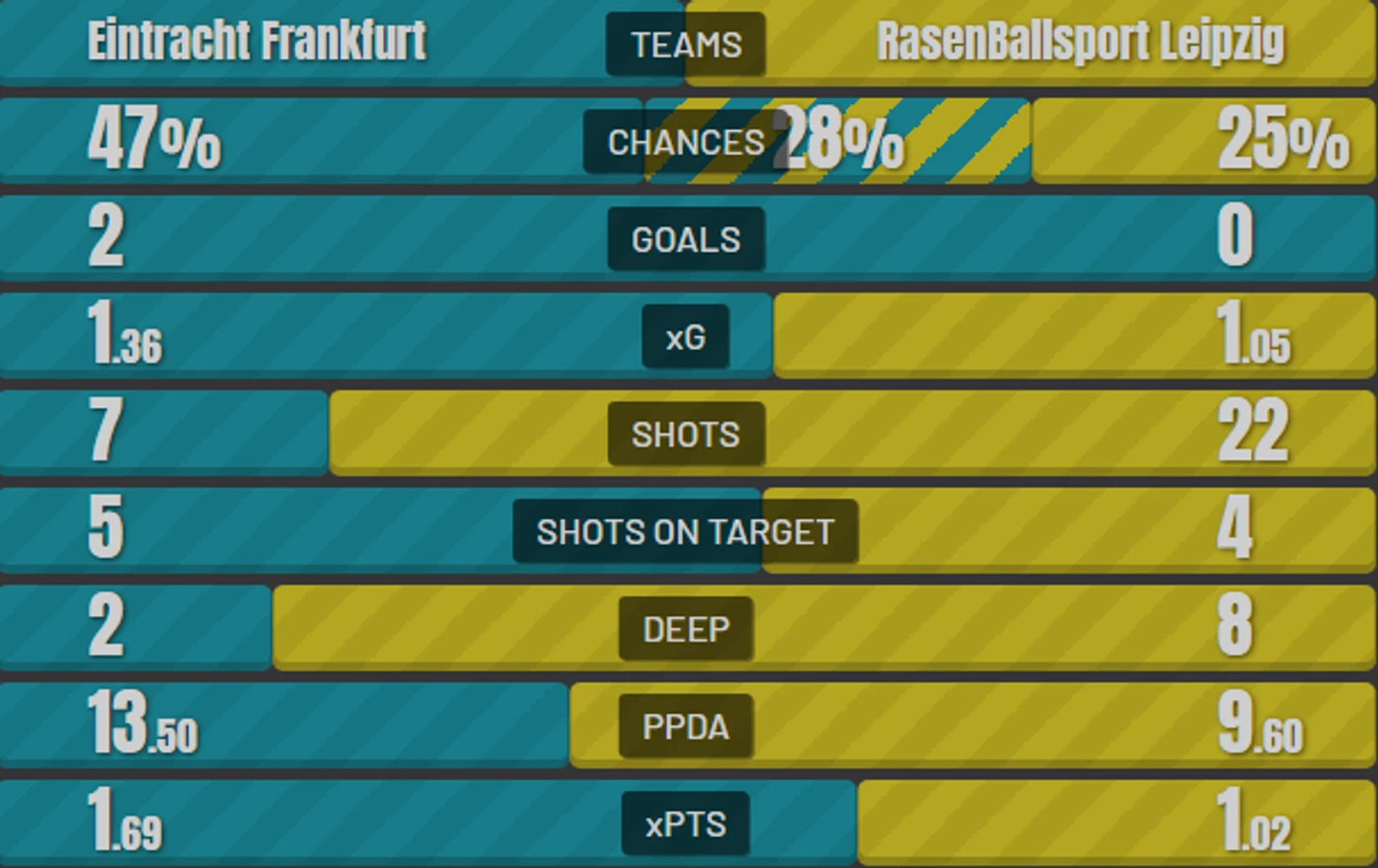 «Лейпциг» не забил впервые в этом сезоне. «Айнтрахт» также не позволил быкам продолжить забивать минимум по три мяча в выездных играх, это серию «Лейпциг» продолжал четыре матча подряд.