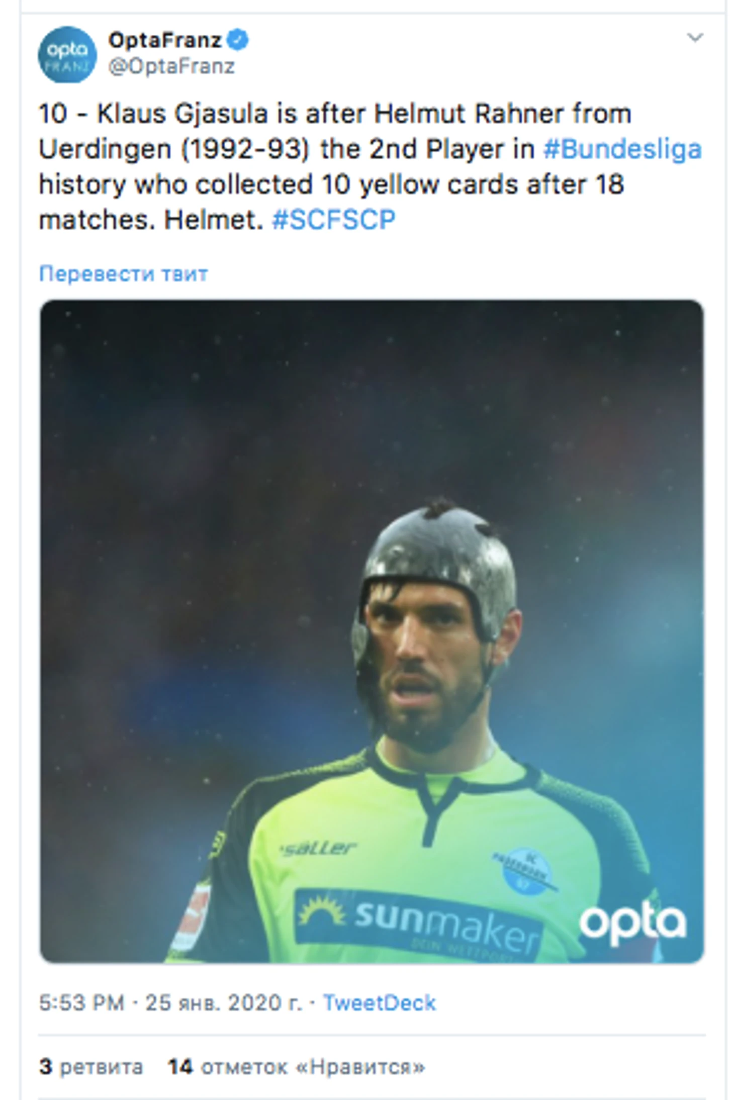 Клаус Гьясула - второй игрок, собравший 10 желтых карточек после 18 игр, после Хельмута Ранера - тогдашний рекорд был зафиксирован в сезоне 92/93 во время игры Хельмута за «Юрдинген». Шлем!