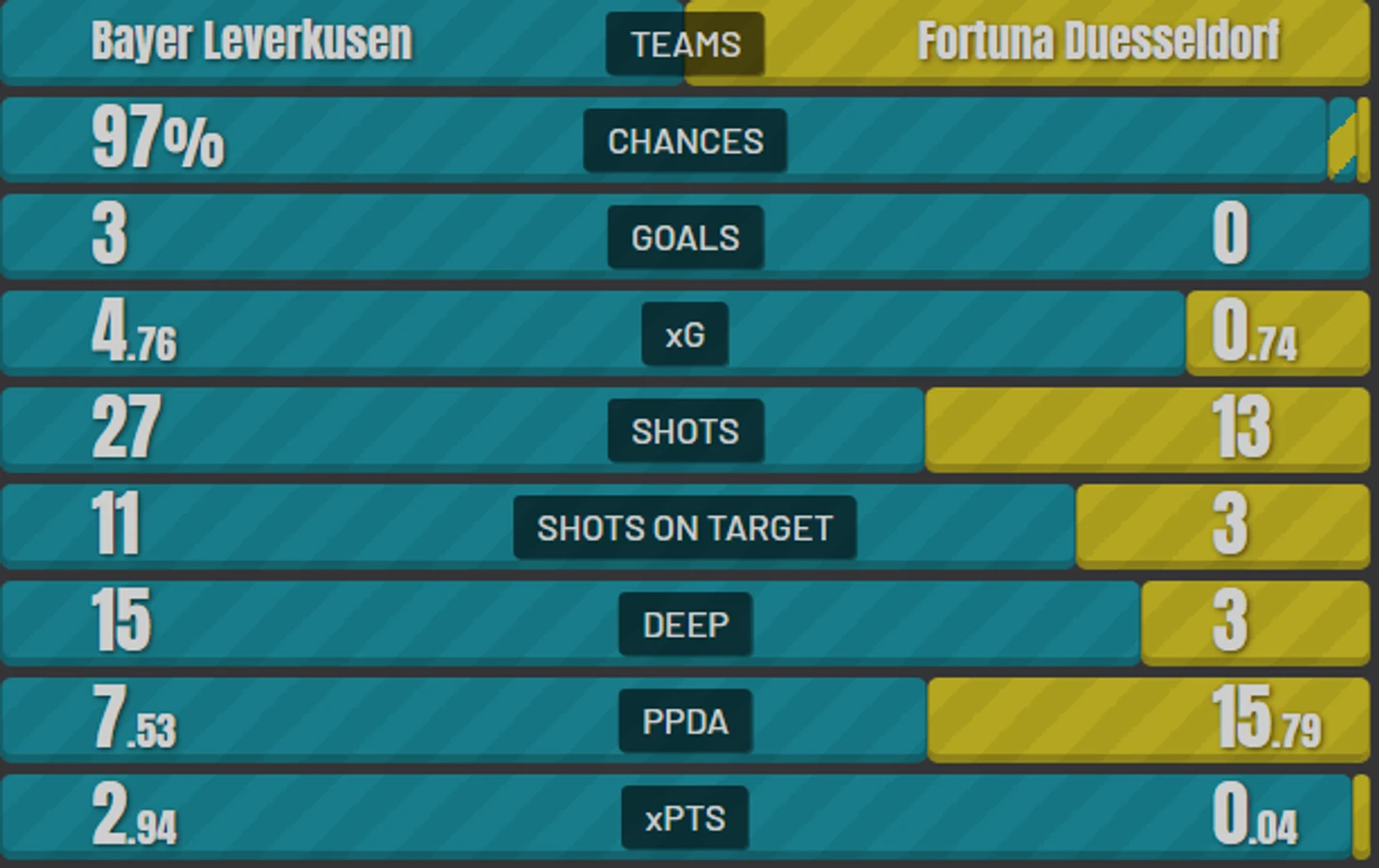 «Байер» выиграл шесть последних матчей против «Фортуны», забив минимум два мяча в каждой встрече. Это самая длинная победная серия «Байера» над клубом из высшего немецкого дивизиона.