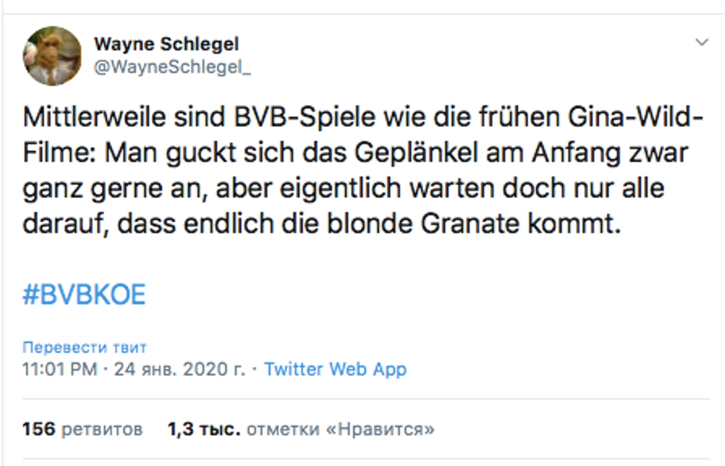 «Игры «Боруссии» все больше похожи на ранние фильмы Джины Уайлд (Прим. - известная немецкая светловолосая порноактриса) - смотришь в начале как бы иронично, но на самом деле только и ждешь появления светловолосой гранаты!»